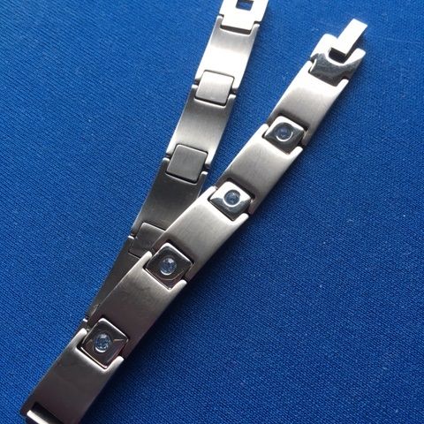 Teräksen väri ja oloinen rannekoru pienillä kivillä