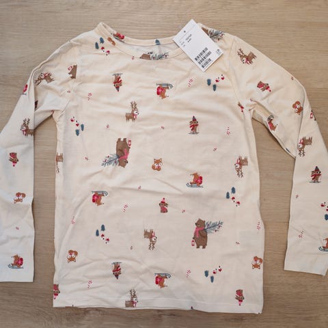 Siistikuntoinen joulupukkipaita. On pientä mitoitusta ja lähempänä 122 kuin 128.