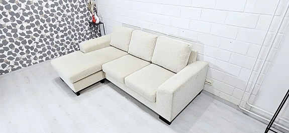 Sohva on hyvä kuntoinen. Päälliset juuri pesty. Päälliset ovat irrotettavat runko myöden. Mitat Leveys 280 cm, syvyys 98 cm. Väri finnsta valkoinen