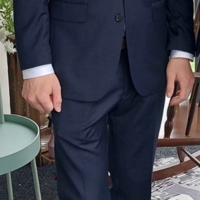 Turo Tailorin Red Label harmaa villasekoitteinen miesten puku, koko 48.