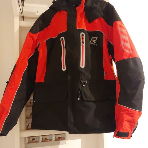 Muuten hyvässä kunnossa, mutta takapuolen kohdalla kulumista (näkyy kuvassa). Lahkeiden sivuissa pitkät kaksisuuntaiset vetoketjut. Koko 50. Soveltuu myös muuhun ulkoilukäyttöön.