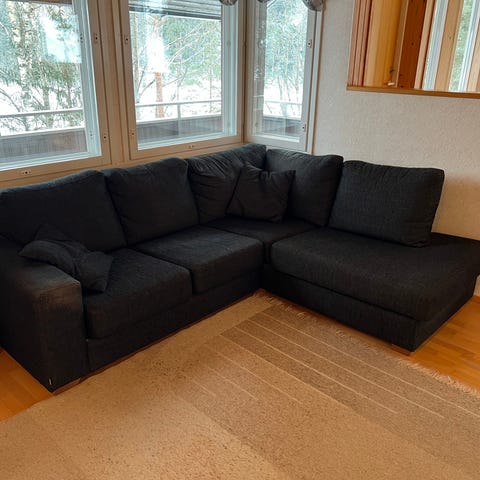 Sohvasta saa helposti siistin uudistamalla istuinosien päälliset, sillä sohvan runko on hyvässä kunnossa.