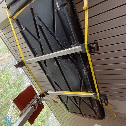 Boksi saadaan asennettua kätevästi auton katolle Thulen hissin avulla. Autan asennuksessa.