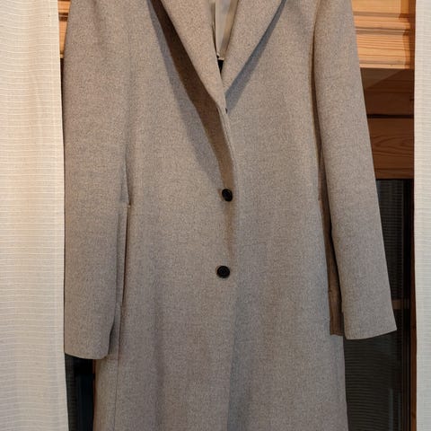 Myydään laadukas Tahari -merkin vedenpitävä villasekoitetakki.