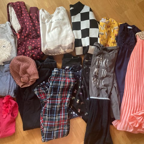 Tyttöjen vaatepaketti, koot 134/140. Enemmän ja vähemmän käytettyjä paitoja sekä pyjama. Neljä t paitaa, neljä pitkähihaista, bolero. Moitteista lisäkuvat, muutoin hyväkuntoisia käytettyjä, osa vain muutaman kerran pidetty. Lisäkuvia pyytämällä!