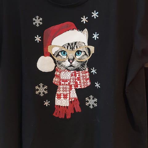 Myydään vain käyttöönotto pesty KappAhalin harmaa jouluinen college, kai-kai 85cm. Hartialta helmaan 84cm.
