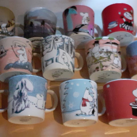 Hyväkuntoisia muumimukeja.
