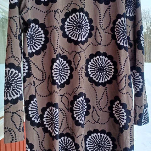 Nanson tunika/ mekko. Siisti, uuden veroinen käytetty tunika. Hieman "kellottuva" helmaosa. Koko M. Kangas 49 % puuvillaa, 49 % modaalia ja 2 % elastaania.