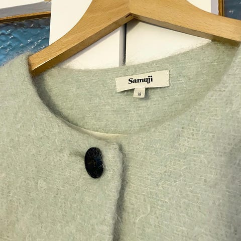 Samujin todella ajaton ja klassinen, car-coat tyylinen villakangastakki 2012 syys/talvi mallistosta. Noin polvipituinen (168 mittaisella) hieman a-linjainen. Kunto erinomainen!