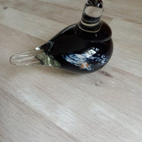 Kuvanmukainen lasinen lintu. Studiolasi Pertunmaa.