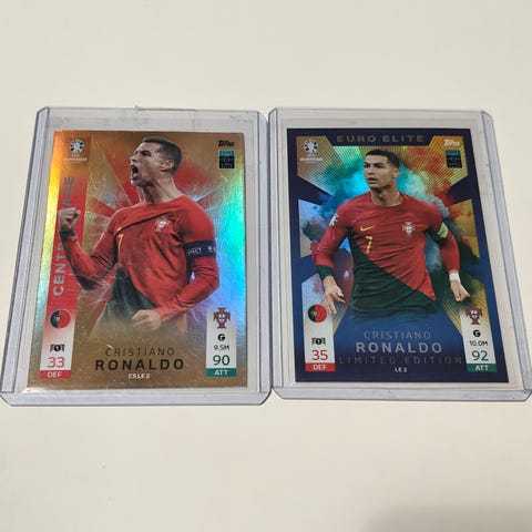 Topps Champions league kauden 2024/2025 jalkapallon keräilykortteja metallirasiassa. (Rasia on eri korttisarjan.) Kortteja mukana 20 erilaista eli kutakin pelaajaa on vain 1 kappale. Esillä näkyy muutama pelaajaesimerkki. Kortit ovat kaikki uudenveroisessa kunnossa, todellisen futisharrastelijan kokoelmasta.
