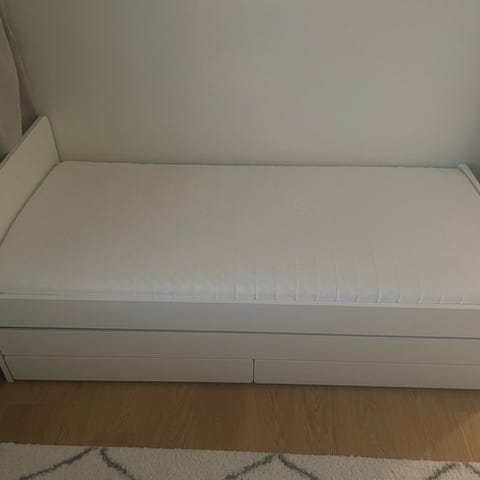 Myydään Ikean Släkt sänky 90cm leveä. Pientä, normaalia käytönjälkiä, kts kuvat 2 ja 3. Sänky on siisti yleisilmeeltään. Jos haluat saat yhden 90cm patjan mukaan. Lisätietoa https://www.ikea.com/fi/fi/p/slaekt-saengynrunko-alasaenky-saeilytystila-valkoinen-s89227731/
