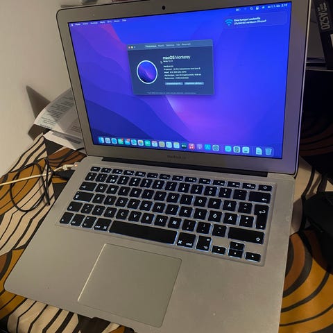 Apple MacBook Air Early 2015 kannettava tietokone, jossa 13-tuumainen näyttö, Intel Core i5 1,6 GHz dual-core -prosessori, 4 GB DDR3 RAM-muistia ja Intel HD Graphics 6000 -näytönohjain. Käyttöjärjestelmänä macOS Big Sur versio 11.7.10.