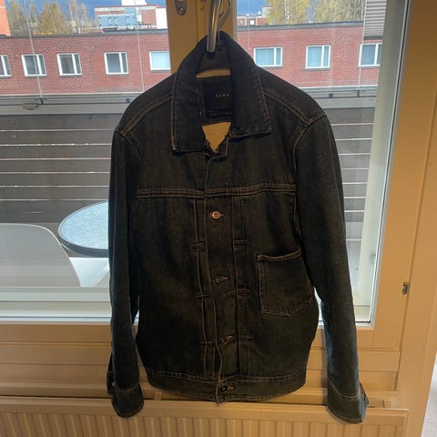 Zara takki mustassa värissä, koko M. Valmistettu polyesteristä. Takissa on vetoketjulliset taskut ja tikattu sisävuori. Sopii miehille.