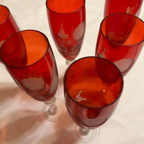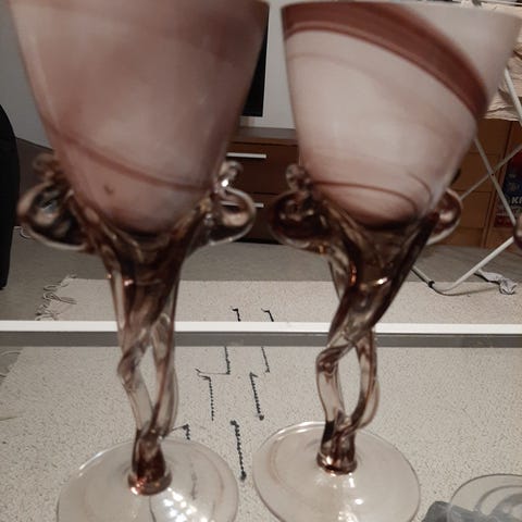 Koristeelliset lasiset viinilasit punertavalla ja ruskealla värillä