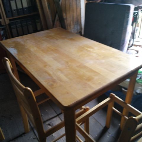 Hyväkuntoinen koivusta tehty ruokapöytä.