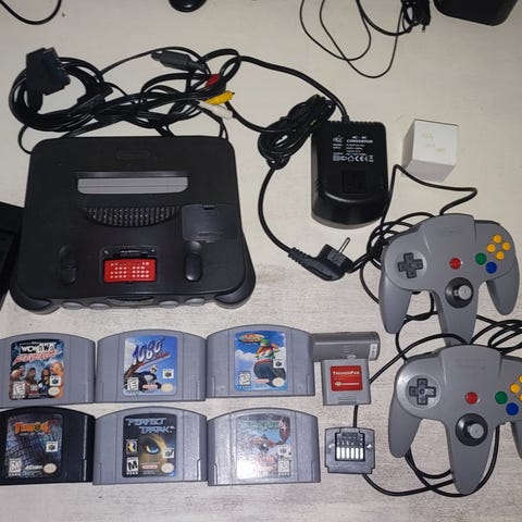 Nintendo 64 pelikonsoli ja lisävarusteet