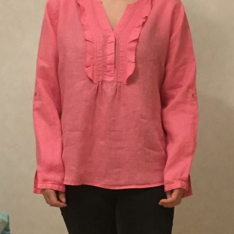 Myydään uudenveroinen More & More paita. Paidan kangas sileäkuituista (ei karheaa) 100% pellavaa. Kokomerkintä 40, koko vastaa mielestäni kokoa M-L. Kainalo-kainalo -mitta 50 cm ja mitta kauluksen reunasta helmaa 66 cm. Väri vadelmanpunainen, sopiva vaikka joulupaidaksi.