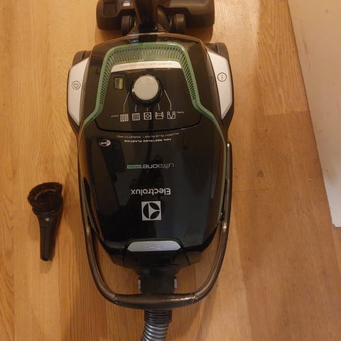 Electrolux ErgoSpace ZSPCR4 pölynimuri, jossa pitkä 13 m ulottuvuus imuroinnissa. Isot pyörät, joten liikkuu ketterästi! Väri musta. Vihreä kuminen naru suojaa seiniä ja ovenpieliä kolhuilta ja sen avulla voi letkun pakata runkoon kiinni säilytettäessä. Kaikki osat ehjiä, myös 3in1 sulake. HUOM! 5 uutta Sbag -pussia sisältyy hintaan!