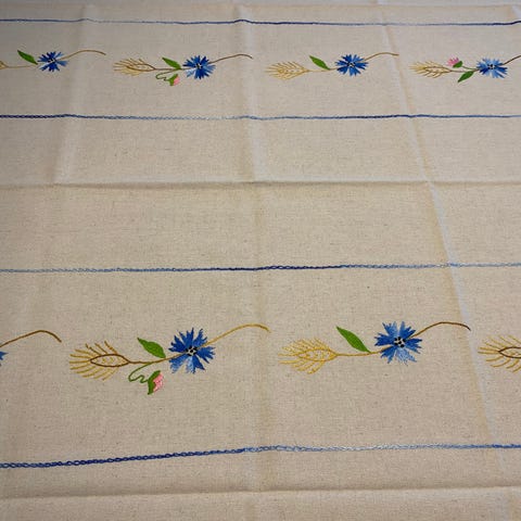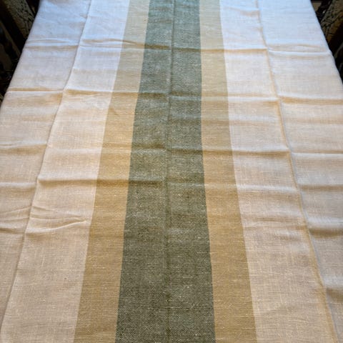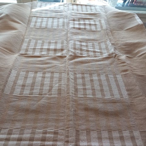 Myydään kauniisti laskeutuvaa, paksua pellavakangasta oleva pöytäliina. Huom liina on isompi kuin kuvassa oleva pöytä