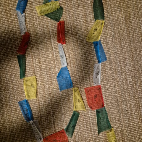 Myydään 2 kpl Tiibetiläisiä värikkäitä rukouslippunauhoja. Materiaali on synteettinen ja vain yläreuna on ommeltu.