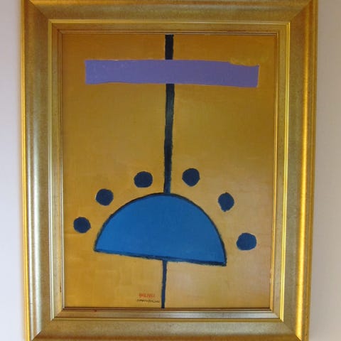Juhani Palmun sekatekniikkatyö kankaalle. Kuvakoko 54,8 x 65,5 cm, kehyksen ulkomitta 75,7 x 86,7 cm. Taulu on ollut Ranskassa näyttelyssä. Nouto Kuopiosta keskustasta.