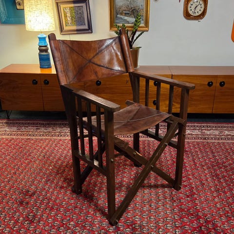 Tyylikäs Balmuir Oxford -taittotuoli, jossa laadukas puurunko ja konjakinruskea nahkaverhoilu. Klassinen safari-henkinen muotoilu, joka toimii upeasti sisustuselementtinä niin olohuoneessa kuin työhuoneessakin.