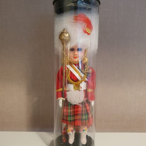 Se on tyypillinen matkamuisto, joka esittää brittisotilasta.
