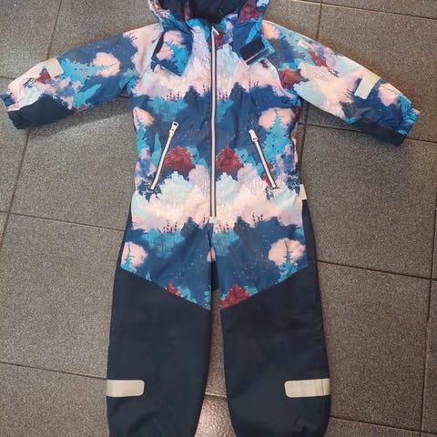 Reiman kurikka toppahaalari. Ollut yhdellä lapsen yhden talven käytössä. Edelleen hyvässä kunnossa vaikka polvissa on hieman kangas kulunut/pehmentynyt, mutta ei kuitenkaan puhki. Jalkojen heijastimet kuluneet. Takapuolen kankaassa todella vähän kulumaa.