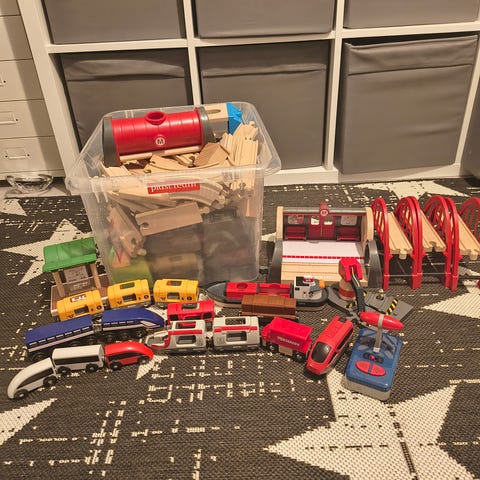 Juna liikkuu pattereilla, voit rakentaa rataosista haluamasi reitin.