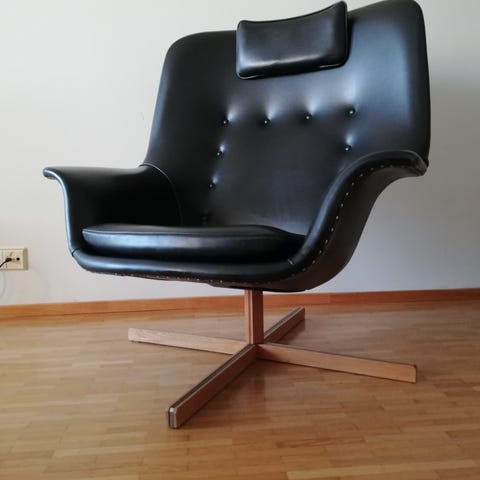 Tyylikäs Auvinen-Wiherheimon suunnittelema Jussi-nojatuoli, mustalla pintaviimeistelyllä.
