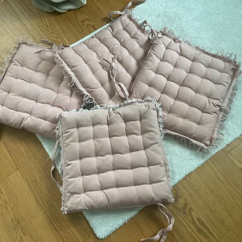 4 istuintyynyä. Joitakin käytönmerkkejä ja yksi valosta haalistunut.