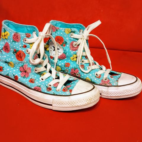 Converse All Star tennarit, koko 36. Tennarit ovat sinivalkoiset ja valmistettu kestävästä materiaalista. Sopivat monipuoliseen käyttöön. Olleet vain sisäkäytössä.