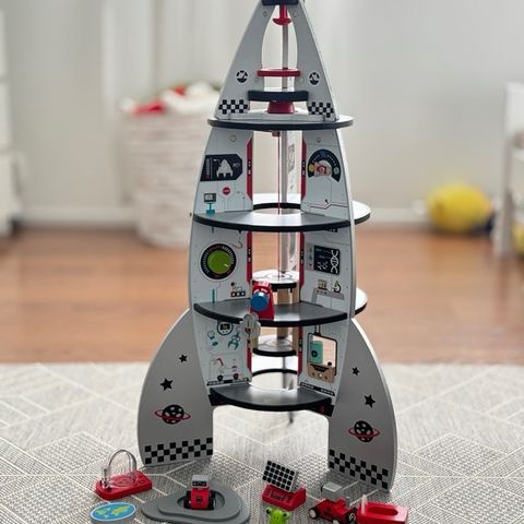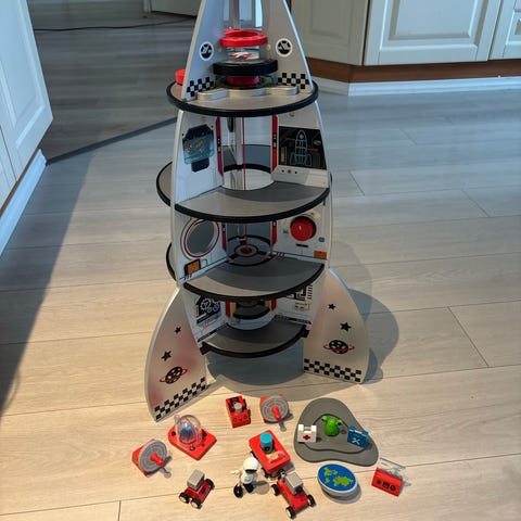 Hape raketti, Hape avaruus paketti, Hape lelu, Hape rakettilelu, avaruuslelu, lapsille lelu, käytetty Hape raketti, lelu myynnissä, vähän leikitty lelu, Hape lelut puulelu Brio Set juna vunarata