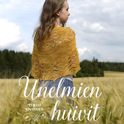 Väri hiekka. Valmiin huivin leveys 43cm ja pituus 165cm.