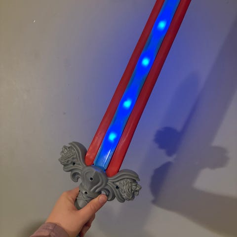 Melkein uusi lelumiekka tulee valot kun heilauttaa miekkaa. Aika jykevän oloinen