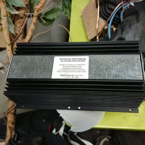 Muuntaja muuttaa 24 volttia 12 volttiin.