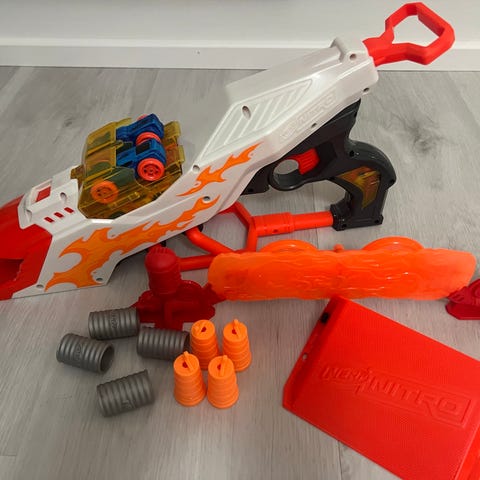 Myydään hyväkuntoiset Nerf Nitro autolaukaisin ja auto.