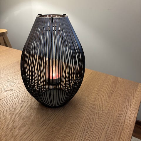 Söpö pieni tuikkulyhty. Materiaali huurrettua lasia, jonka päällä on irrotettava kullan värinen tähtiverkko. Pohjan mitat n. 7,5 x 7,5 cm, korkeus n.7,5 cm. On ollut vähällä käytöllä, joten on todella siistissä kunnossa, melkein kuin uusi. Hinta 10€. Nouto Espoo / Helsinki (esim. Espoontori / Lippulaiva / Sello / rautatieasema / Kamppi). Voin myös postittaa, jolloin postituskulut lisätään hintaan. Tori-diili tai tavalliset kaupat.