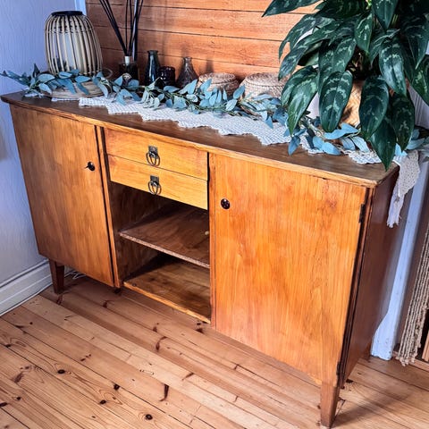 Myydään vanha tamminen lipasto. Kaappi aukeaa ylhäältä alas tasoksi, sopii säilytykseen tai esim baarikaapiksi. Alaosassa kolme vetolaatikkoa. Ostettu v 1995 huutokaupasta. Kansilevyssä käytön jälkiä, ollaan pidetty pitsiliinaa päällä.
