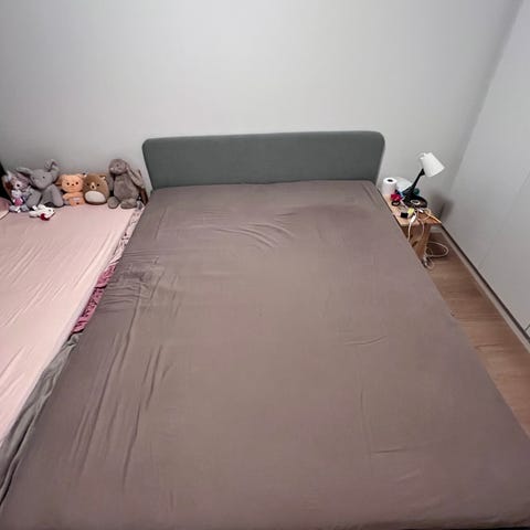 Sänky ja patja on ostettu vuonna 2024. Molemmat ovat hyvässä kunnossa, ja ne ovat olleet nyt ilman käyttöä asunnossa puolen vuoden ajan.