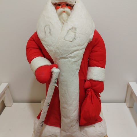 50-60 luvulta venäläinen joulukuusi ja joulupukki .Kova muovi . Pohjalla vanha ( USSR)leima/ hinta 1.30k.Koristet ei kuulu tähän mutta saa mukaan jos haluat . Korkeus noin 17 cm.Minusta täälä koristella puutu vielä yksi hahmo ,rikki .Jäljet on.