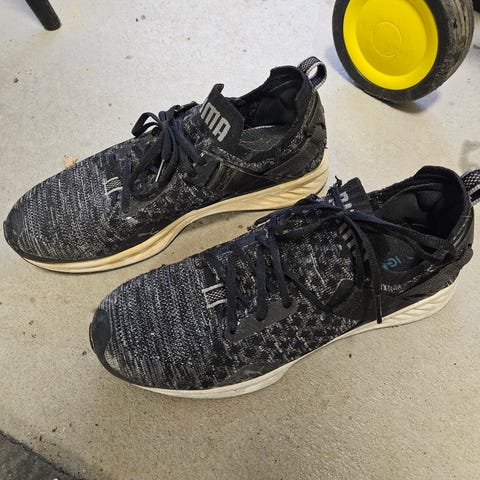 Erittäin hyvät lenkkarit. Eivät sovellu enää juoksuun koska muoviosa hankaa kantapäässä. Muuten täysin käyttökunnossa.