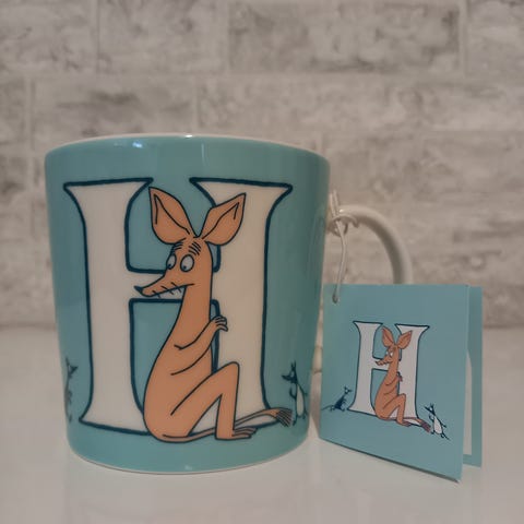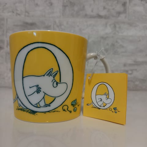 Tarrallinen ja käyttämätön iso Muumimuki ABC L 0,4l.