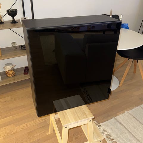 Ikean bestå kaappi/hylly 40x60x38cm. Runko vaaleaksi petsattu tammikuvio, ovena valaisinovi