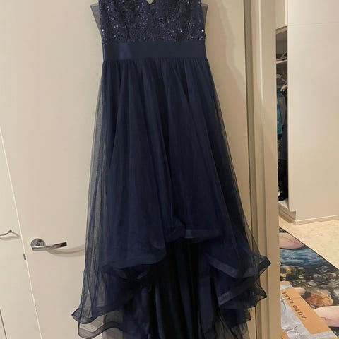 Upea sähkönsininen juhlamekko vaikka vanhojen tansseihin, mukaan tulee vannehame, koko n.34-36