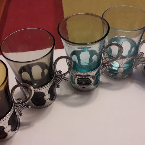 4 kpl porosnapsilaseja puualustalla