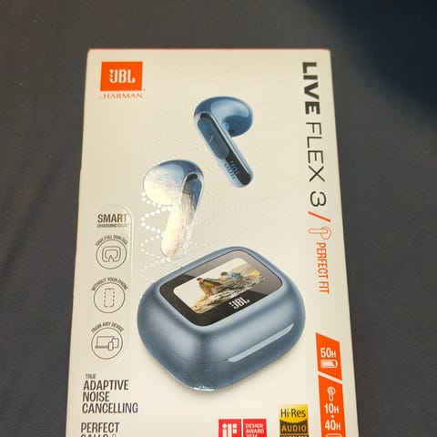 JBL Live Flex 3 langattomat nappikuulokkeet. Mukana latauskotelo, jossa näyttö, josta voi ohjata musiikkia. Äänenvaimennus. Testattu vain pari kertaa. Takuuta 2027 asti.