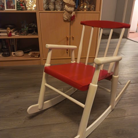 Vanha lasten keinu. Ajan patinoima, toimii toki keinunakin mutta ollut lähinnä koriste-esineenä. Vain nouto.