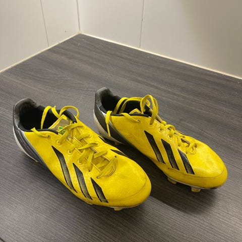 Adidas F10.3 jalkapallokengät hopeanväriset sinisillä yksityiskohdilla. Koko 33. Materiaalina keinonahka ja kumipohja.